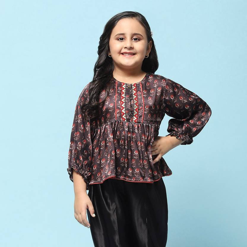 Girls Casual Viscose Blend Top (Black, Pack of 1)