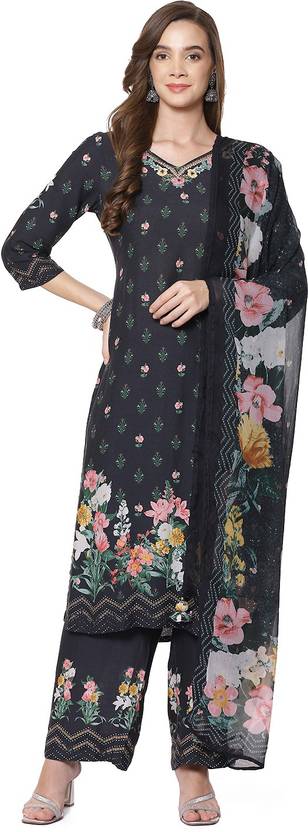 BIBA Printed Kurta, Palazzo & Dupatta Set