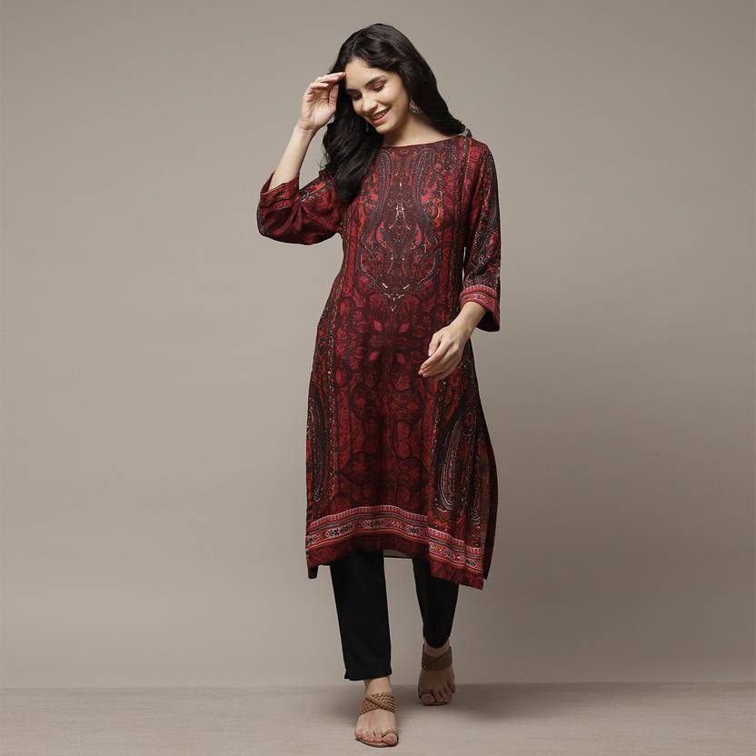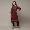 Women Printed Viscose Rayon A-line Kurta (Red)