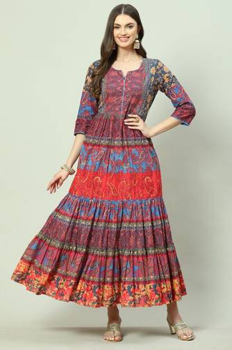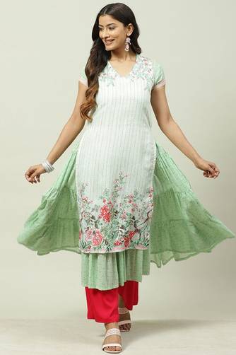 BIBA Women Printed Flared Kurta (Black)