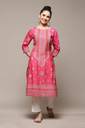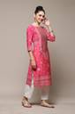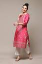 Women Printed Viscose Rayon Straight Kurta (Pink)