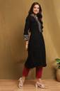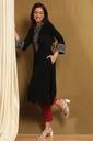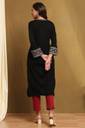 Women Self Design Acrylic Blend Straight Kurta (Black)
