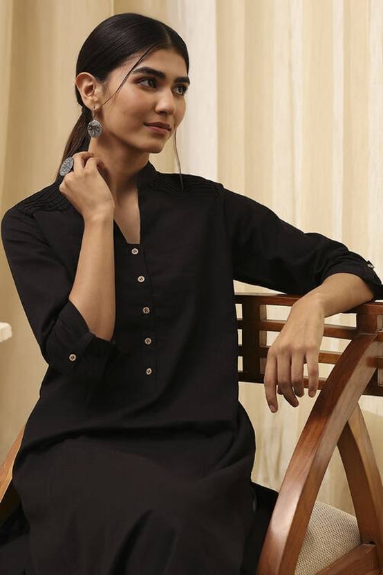 BIBA Women Solid Straight Kurta (Black)