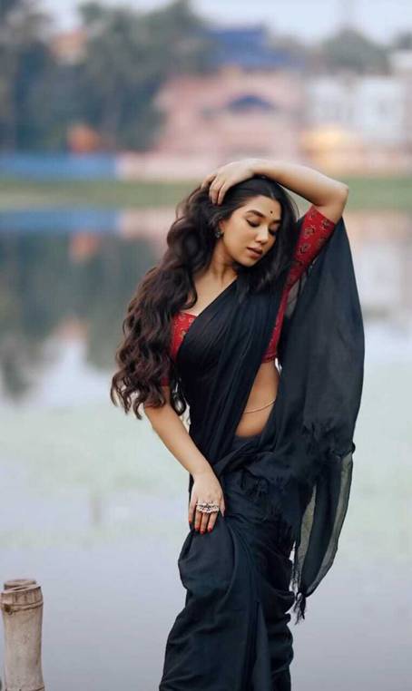 Solid/Plain Bollywood Cotton Linen Saree (Black)