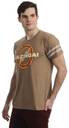 Men Printed Round Neck Cotton Blend Brown T-Shirt