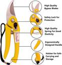 QUALITY BLADES - The Blades Of The Pruning Scissors Are Made Of High-Quality Stainless Steel. They Are Tough And Sharp Cutting, Suitable For Cutting Light Branches With A Diameter Of 0.5 Inches Or Less., LIGHTWEIGHT - The Plant Shears Weighs Only 150 Gms, Is Comfortable To Hold And Flexible In Operation., USER-FRIENDLY DESIGN -The Ergonomically Designed Handle Is Suitable For Left And Right Hands And Is About 4 Inches Long., IN-BUILT LOCK - Easy To Operate Locking Mechanism Keeps Trimming Scissors Closed When Not In Use., EXTRA SPRING-Pruning Shears For Gardening Has High Elasticity And Labor-Saving Spring. The Pack Includes An Extra Spring., HOLSTER- The Shear Has a Holster For Safe Carrying And Storage After Use.