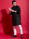 bigbanana Men Solid Straight Kurta (Black)