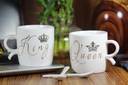 Biggie Collections King Queen Mr and Mrs Ceramic Coffee Mug (200 ml, Pack of 2)