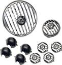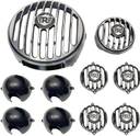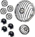 B.K ACCESSORIES It is designed for easy installation over the head light, indicators and parking pilot lights of your Royal Enfield motorcycle to enhance your style statement. Made with CNC Metal, this complete set is quite easy for installation over the Hunter 350 motorcycle within few minutes. Further, each of the grill set is made to perfection along with outstanding protection from corrosion, dents and scratches. Headlight jali grill for Royal Enfield Hunter 350. Made With iron metal, which makes the structure very stable, hard and long lasting. Designed in full die-casted metal body, the offered headlight and back light grill in this set can be easily installed over the head light and tail light of the Motorcycle to enhance the look. Just unscrew the original headlight cover and install over the pre-filled holes. Package Content :- Bike Metal Front Rear Headlight Grill / Jali Cover Set With Tail Lamp, Indicator Cup / Head Light Jali Jali cover (Set Of 10) Compatible With Royal Enfield Hunter 350