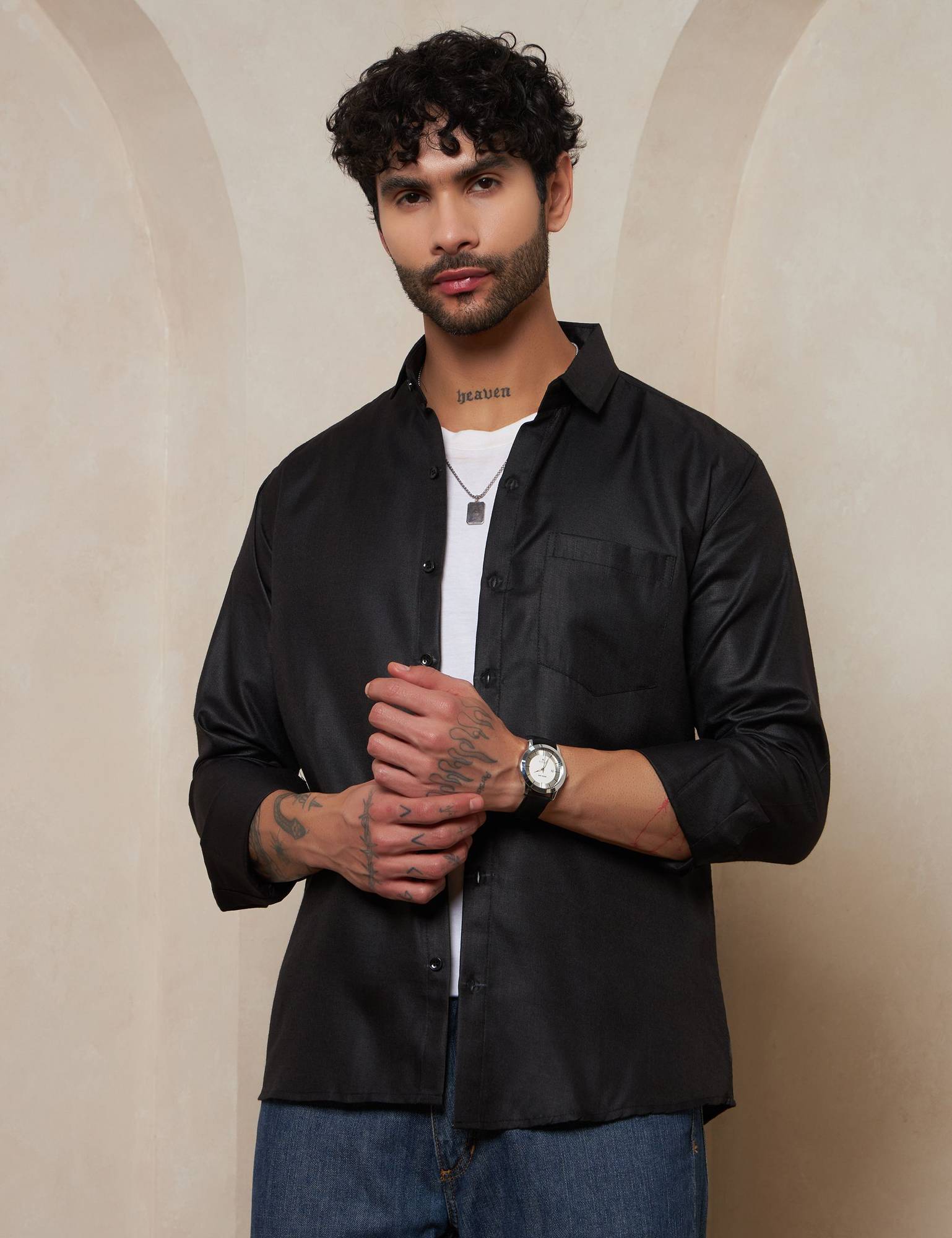 Elevate your professional and evening wardrobe with this Classic Shirt. Crafted for the modern man, this shirt features a refined semi-spread collar and a clean, solid pattern that offers a regal, sophisticated look. The premium fabric provides a natural sheen, making it an ideal choice for both formal boardroom meetings and celebratory festive occasions.