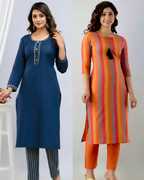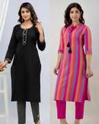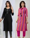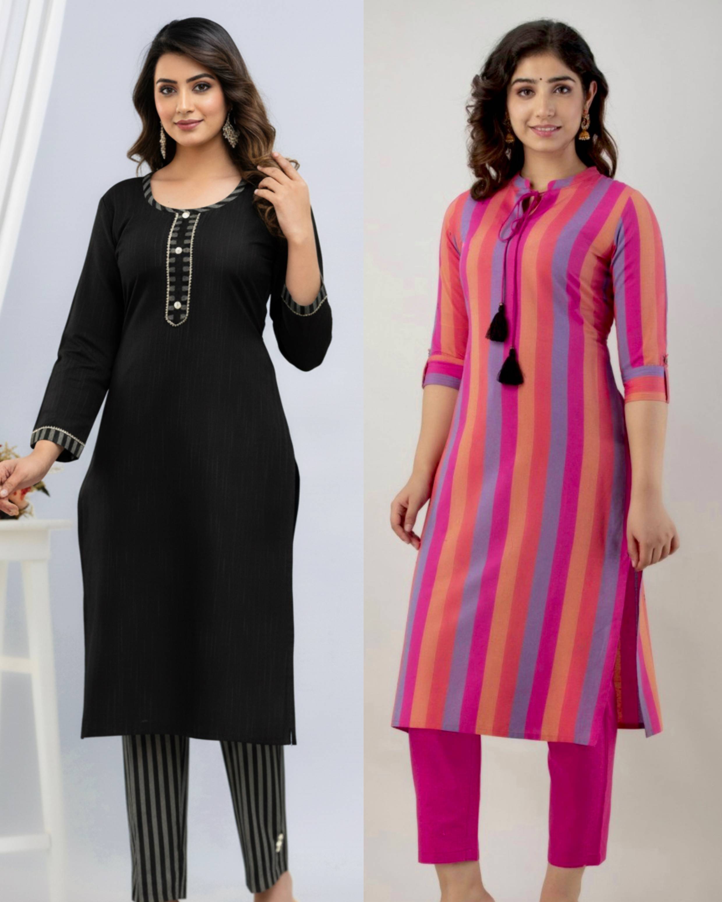 BILANZA Women Striped, Solid Straight Kurta (Multicolor)
