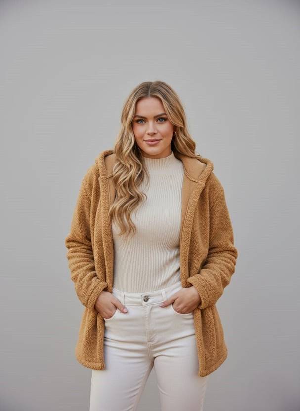 Category: Women’s Winterwear / Shrug / Sherpa Jacket/Jacket, Product Name: Bilbury Winter Wear Shrug for Women, Fabric: Woolen Blend Fleece, Fit Type: Relaxed Fit, Sleeve Type: Full Sleeves, Neck Type: Hooded Open Front, Pockets: 2 Side Pockets, Closure Type: Open Front, Closure Type: Open FrontCare Instructions: Hand wash or gentle machine wash; do not bleach, Ideal For: Winter season, office wear, travel, casual outings, daily use