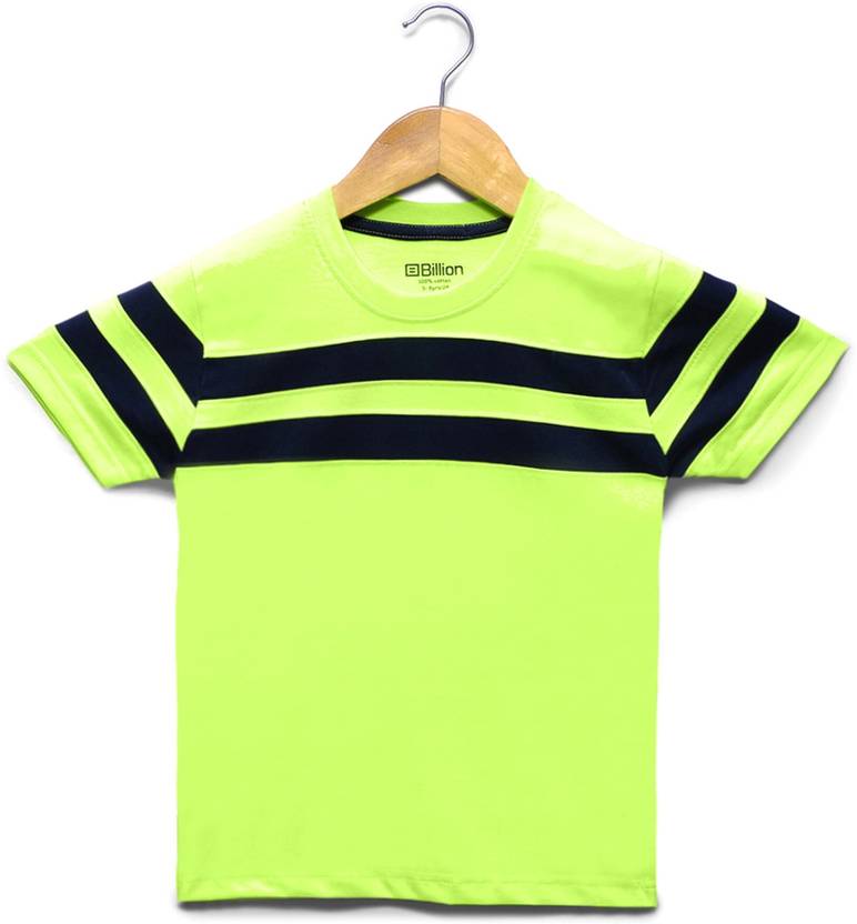 Billion Boys Striped Pure Cotton Regular T Shirt (Light Green, Pack of 1)