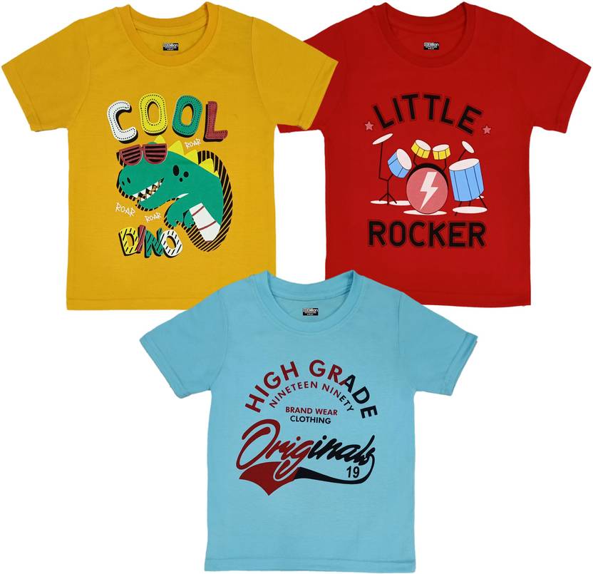 Billion Boys Typography Cotton Blend Regular T Shirt (Multicolor, Pack of 3)