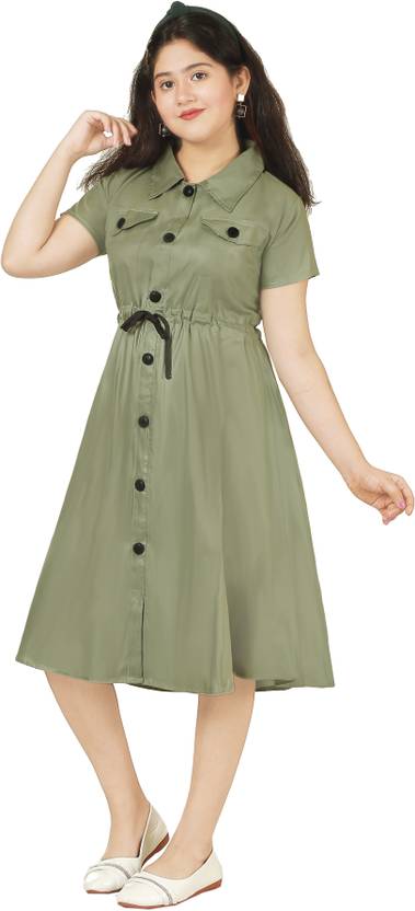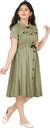 Billion Girls Below Knee Casual Dress (Green, Short Sleeve)