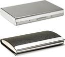 billionBAG High Quality | Combo of 2 | Steel Plain Metal Waterproof ATM And Black Leather Piece Visiting Card Holder 9033 6 Card Holder (Set of 2, Silver)