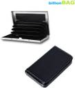 billionBAG New Steel Plain Luxurious Silver ATM & Soft Black Leather Metal Silver Visiting 6 Card Holder (Set of 2, Multicolor)