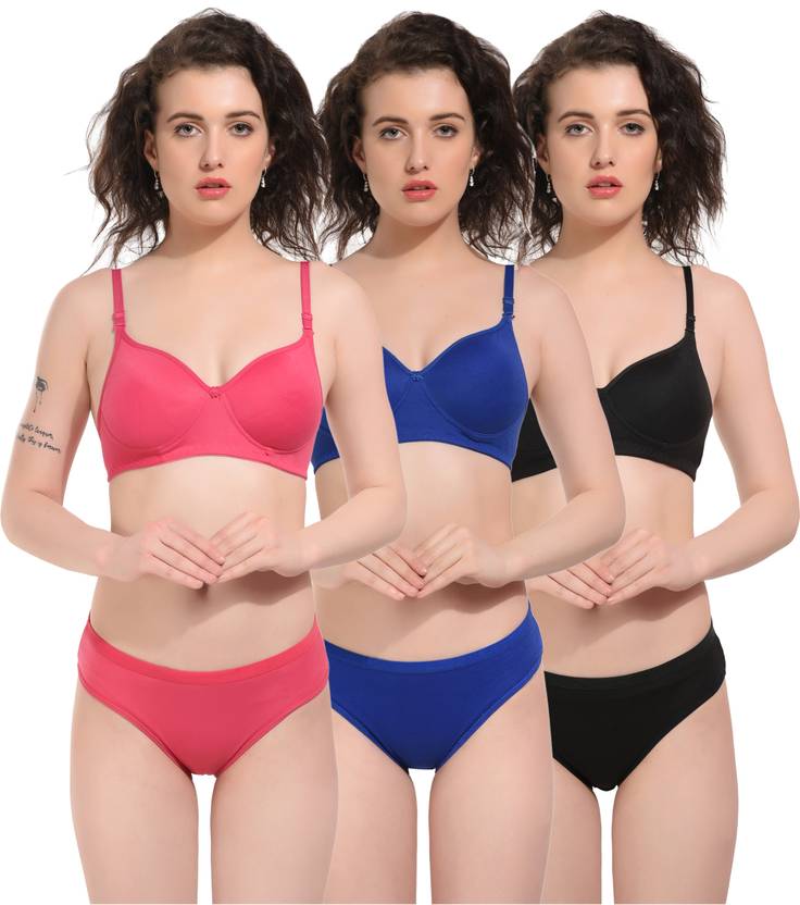 Bilqis Bra & Panty Set Solid Multicolor Lingerie Set