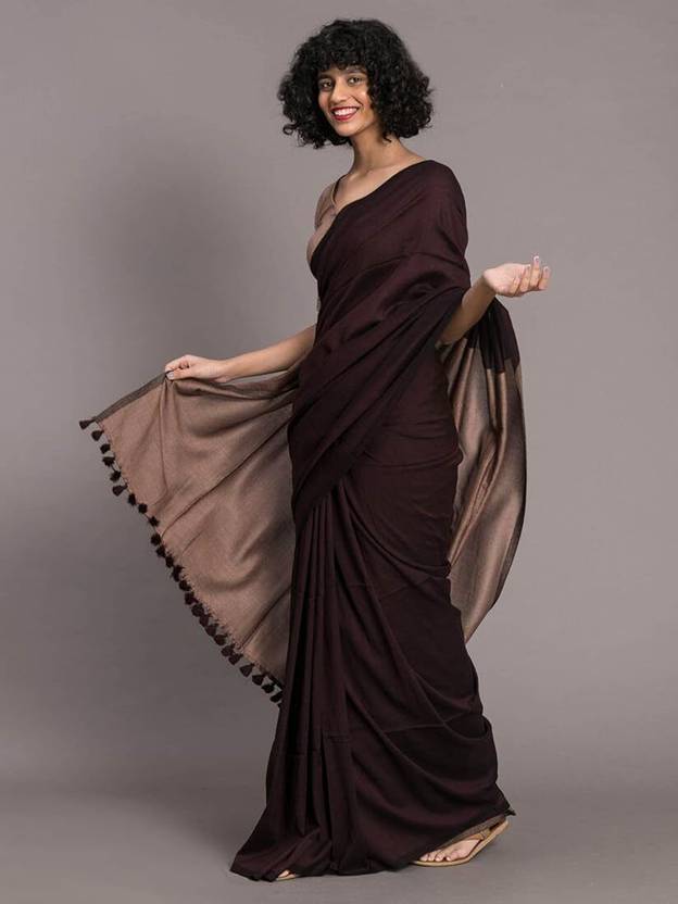 Solid/Plain Daily Wear Pure Cotton Saree (Brown)