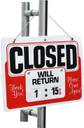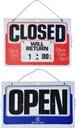 These Bindermax original quality Open and Closed poly propylene Door Sign with Chain has it written Open and closed in bold black capital letters and large font for easy attention. Easy to hang either on the metalic chain on to your door knob or use the hole in the board to hang it on a nail.Durable polypropylene made wheels which are adjustable from the sides to adjust the hours, minutes , AM and PM to set your return time.Such boards keeps your customers informed of your hours of operation rather than leaving them clueless.
