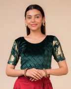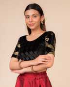 Flaunt your sarees with a fashionable range of ready-to-wear stretchable blouses from ADVI. This blouse is a unique creation from our designers. No more running around town for alterations. These tailored blouses fit perfectly to your body enhancing curves and coordinating with your sarees. Choose from a wide range of everyday wear basics and the stunning party wear range of designer blouses. Make an ethnic statement in contemporary style.