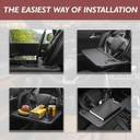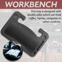 Steering Wheel Attachment: A crucial design element is its ability to easily and securely attach to the car's steering wheel. The curved cutouts are specifically shaped to hook onto the steering wheel rim, allowing for quick installation and removal without the need for tools., Drink Holder(s): The presence of a circular cutout indicates a dedicated space for holding a drink container (cup, can, or bottle). This is vital for preventing spills and keeping beverages within easy reach., Portable and Lightweight: Being designed for in-car use, the tray is likely made from a lightweight material (most likely plastic). This makes it easy to handle, position, and store when not in use. Its slim profile also contributes to its portability., Raised Edges: The slightly raised edges around the main tray area are a significant feature. They serve to contain items placed on the tray, preventing them from accidentally sliding or rolling off, especially important when holding food or small objects.