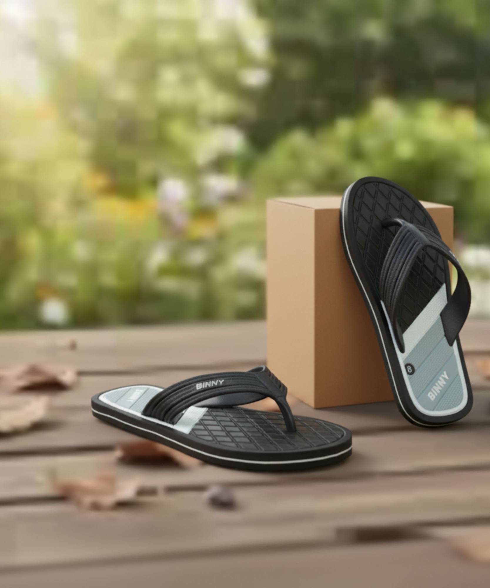 Step into all-day comfort with BINNY Men’s Flip-Flops, designed for everyday wear and poolside relaxation. Made with a durable anti-slip sole and a soft cushioned footbed, these flip-flops offer excellent grip and support on wet and dry surfaces. The stylish black and grey design adds a modern edge, while the lightweight build ensures maximum comfort wherever you go.