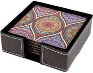 Birch & Co. Square Leather, Wood Coaster Set (Pack of 6)