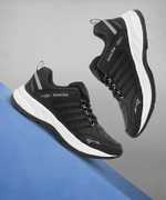 Step up your performance with these stylish black sports running shoes designed for comfort, durability, and all-day wear. Featuring a breathable upper with a lace-up closure for a secure fit, these shoes are built for athletic use and daily wear. The cushioned midsole offers superior shock absorption, while the non-slip rubber outsole ensures excellent traction on various surfaces. A perfect combination of function and fashion, these shoes are ideal for running, walking, gym workouts, or casual outings.