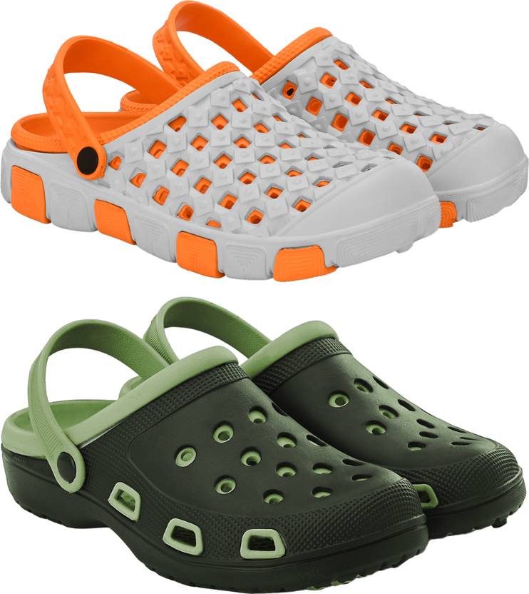 Birde Men Stylish Comfortable Lightweight Regular Wear Clogs For pack of 2 Sandal  (Orange, Green , 9)