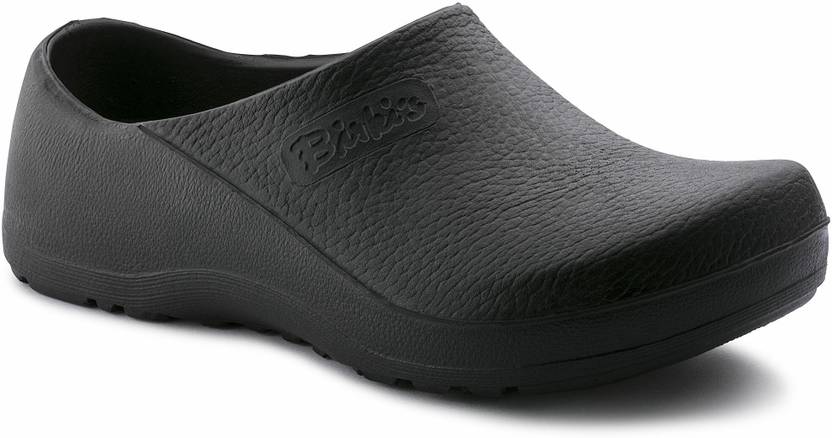 BIRKENSTOCK developed the Profi Birki to offer perfect grip and sure-footedness in almost any work environment. With its raised heel section and extended front, it encloses the entire foot and promotes a natural rolling motion with every step you take. The nonslip PU sole proves itself to be the ideal solution on smooth floor surfaces in particular. The Profi Birki is a top choice among long-term employees in hospitals, the food industry, and kitchens. Its outstanding hygiene properties likewise attest to this: the oil- and grease-resistant clog is washable to 80° Celsius, while the removable PU footbed can be washed to 60° Celsius and can also be disinfected. All Profi Birki models are certified in accordance with EN ISO 20347:2012 OB E (SRB category).