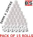 BIS POS THERMAL PAPER ROLL 56MM (2inch) X 15MTRS 50 gsm Thermal Paper (Set of 15, White)