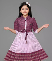 BISAL Indi Girls Calf Length Casual Dress (Purple, 3/4 Sleeve)