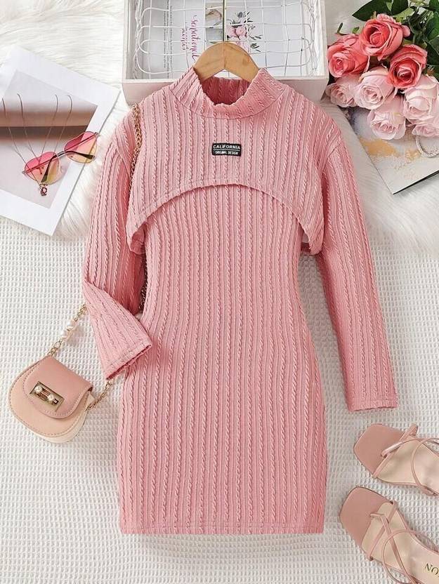 BISAL Indi Girls Midi/Knee Length Party Dress (Pink, Full Sleeve)