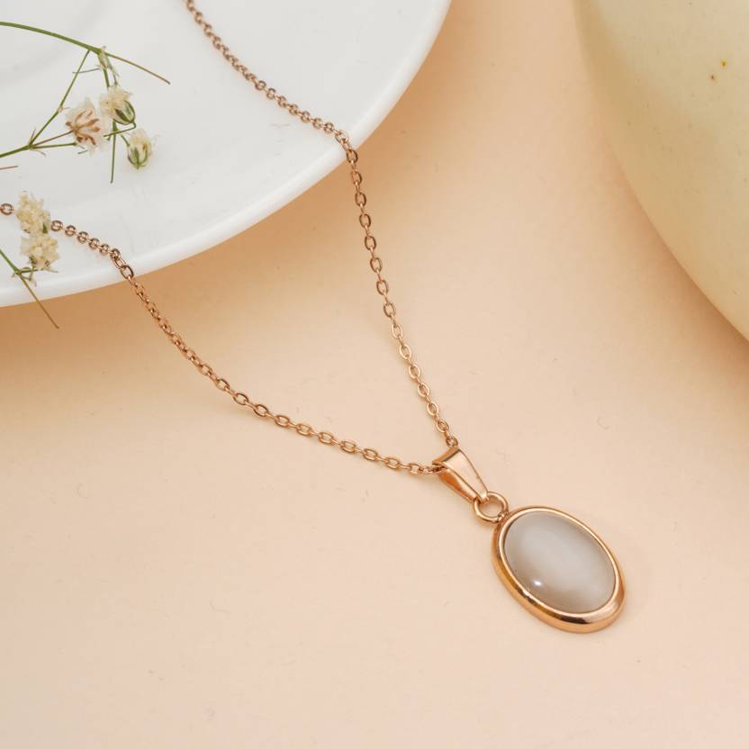 Ivory Opal Pendant Chain for Girls Women|Rose Gold Plated|Anniversary Gift|