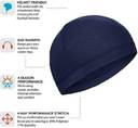 99 PROBLEMS BUT SWEAT AINâT ONE: Our helmet skull cap up your sweat and keeps it out of your eyes. Recommended for athletes, heavy sweaters and guy who do real work. DESIGNED TO BE WORN UNDER HELMETS & HARD HATS: Instead of sweating inside your helmet (I can smell that nastiness from here), sweat into our breathable skull cap helmet liner. Afterwards, throw it into the wash and watch it speed dry on its own. FUNCTIONAL COOLING: Youâll feel cool as soon as you put this because our skull cap literally cools your nogginâ with its moisture activated cooling fabric. CUSTOMERS LOVE US AN: Yes, they do. And you'll love us too. Our helmet products are the #1 choice for Amazon customers. Youâve got nothing to lose but the sweat. BISMAADH CAP SUITABLE FOR EVERYWHERE :Our cap can be worn as cycling hat ,dew rag head wrap skull cap,motorcycling ,biker cap ,motorcycle cap .Perfect for outdoor activities lovers ,especially for those who are fond of motorcycling ,bicycling ,camping ,jogging ,hiking ,the classical cap will always keep you cool. BIKER CAP & GREAT DEAL :Package including different colors motorcycle head wrap ,what a great deal you can change your style as you like or share with your friends & family members,surely they will love this useful cycling hat too. BREATHABLE & COMFORTABLE MATERIAL :Our cycling sweatband caps are made of breathable & light weight fabric ,you will feel comfortable once you wear it.Keeping the sweat off your head & eyes ,protect you from the strong sun shine,you can enjoy your sports freely without sweat problem. ELASTIC CAPS :The stretchable material makes it possible for you to adjust the size to fit you well ,never too lose or too tight.