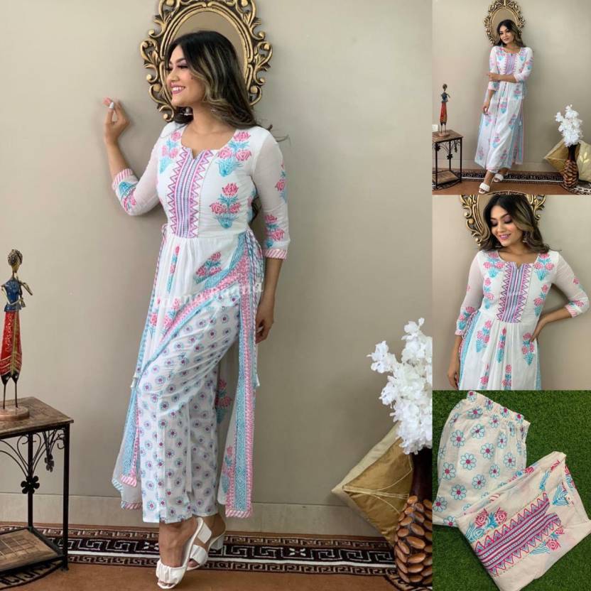 Brings to you this beautiful Flower Print Kurti with Pant Set which is made from rayon fabric with beautiful designed work all over. This kurta set has been designed keeping in mind the latest trends in contemporary casual fashion. The dress combines ethnic with the fashion of today and makes you stand out among others when you adorn it. This Kurti has 3/4 sleeves. The length of the Kurti is 46 Inch and Pant length is 38 Inch. You can wear on casual or formal occasions, fashion, parties depending on the occasion and mood of you.