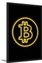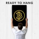 Bitcoin Neon Poster Wall Frame, BTC Crypto Poster for Wall Paper Print (20 inch X 14 inch, Framed)