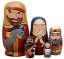 and Pieces - 5pc Nesting Doll Holy Family -The Nativity Family Hand Painted Hand Made Wooden Nesting Dolls Matryoshka Nativity Figurines - Set of 5 Dolls From 5.5" Tall