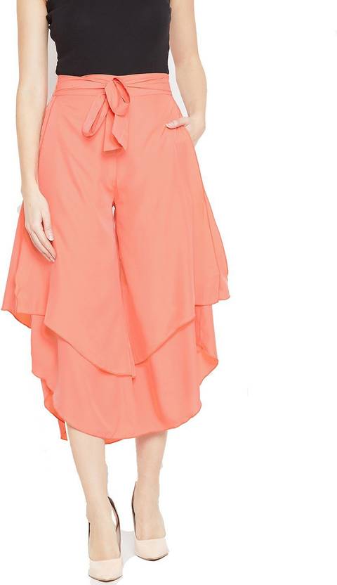 Bitterlime Women Coral Red Asymmetrical Layered Trouser