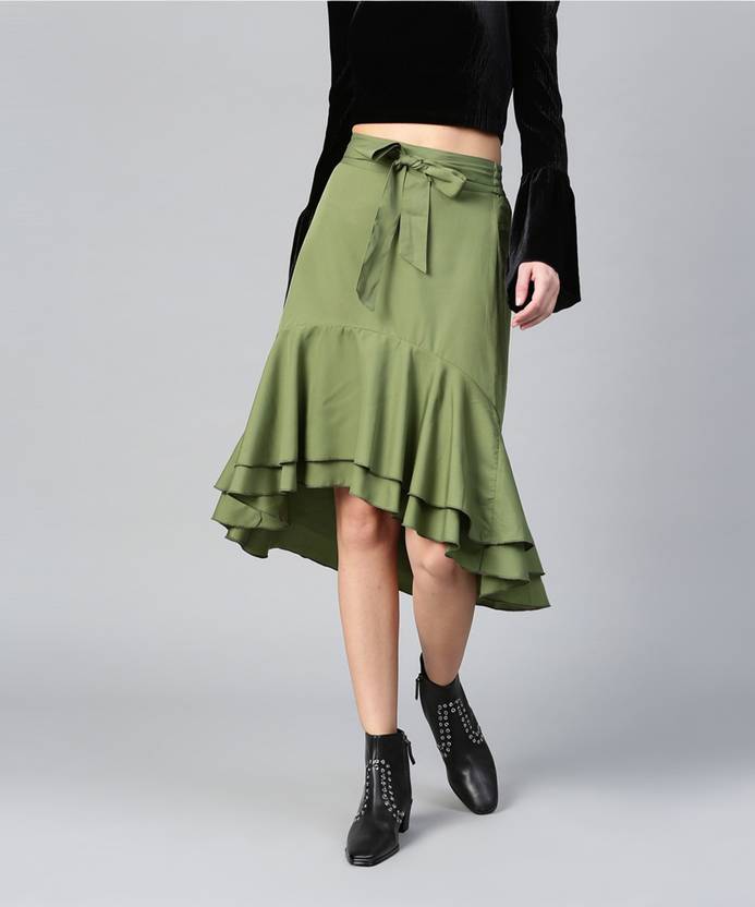 BITTERLIME Solid Women Peplum Dark Green Skirt