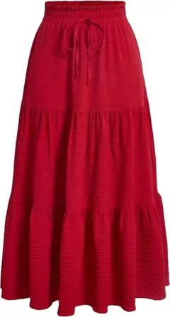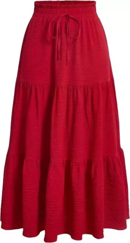 Biubaa Solid Women Flared Red Skirt