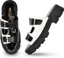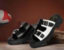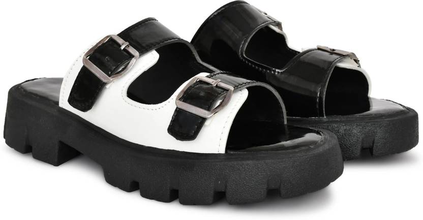 BIZAZO Men Slippers (Black, White , 7)