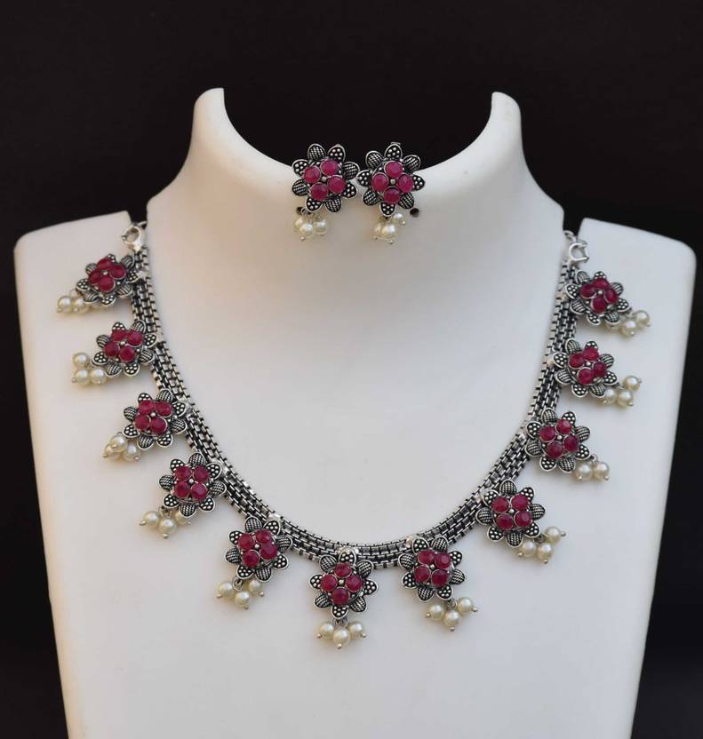 Oxidised Silver Beautiful bollywood Necklace And Earrings Set