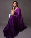 The saree in this image is a striking royal purple satin saree, exuding a luxurious, regal vibe perfect for high-glam events. Here's a full breakdown: