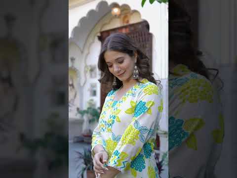 Adorned with a charming floral print, this green kurta and pant set exudes elegance and st...