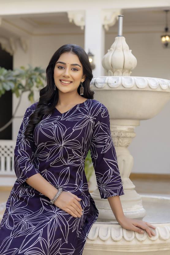 BKApparels Women Printed Straight Kurta (Dark Blue)