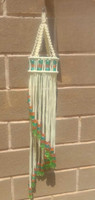 The ornament is embellished with large, striking beads and delicate bells that add a unique and decorative element to the design. The beads are positioned at the top as well as at the ends of the string danglers, catching light beautifully and adding a hint of sparkle to your space. The bells create a soft, soothing sound when they move, adding a calming and musical element to your home.
