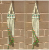 This jhumar is made using the macrame technique, an art form that involves knotting ropes or cords to create beautiful patterns and designs. The intricate knots and weaves give the jhumar a unique and handmade look, adding a touch of elegance and charm to your home decor. The craftsmanship is visible in every detail, making this piece not just a decoration but a work of art.