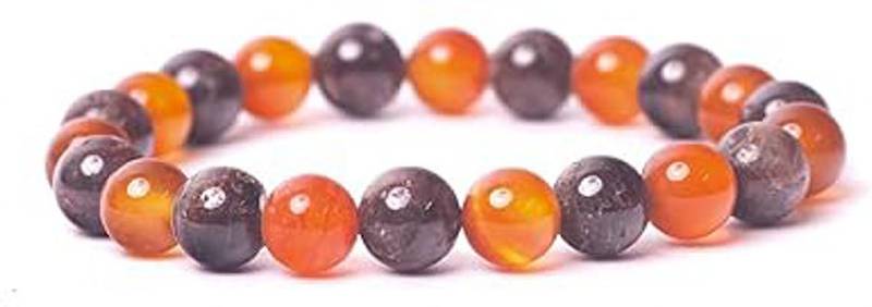 BKJ Natural Carnelian and Garnet Bracelet for Clarity and Protection | Natural Reiki Charged and Affirmed 8mm Beads Healing Crystal Bracelet for Men and Women